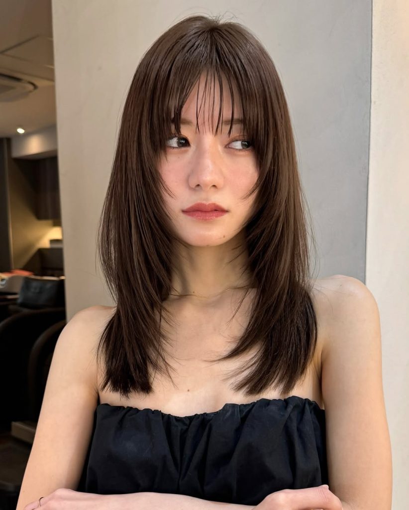 Model rambut ini sangat direkomendasikan untuk pemilik rambut tebal atau bagi yang ingin menciptakan kesan rambut lebih transparan dan airy. Dipadukan dengan poni tipis atau see-through bangs, tampilannya makin menarik.