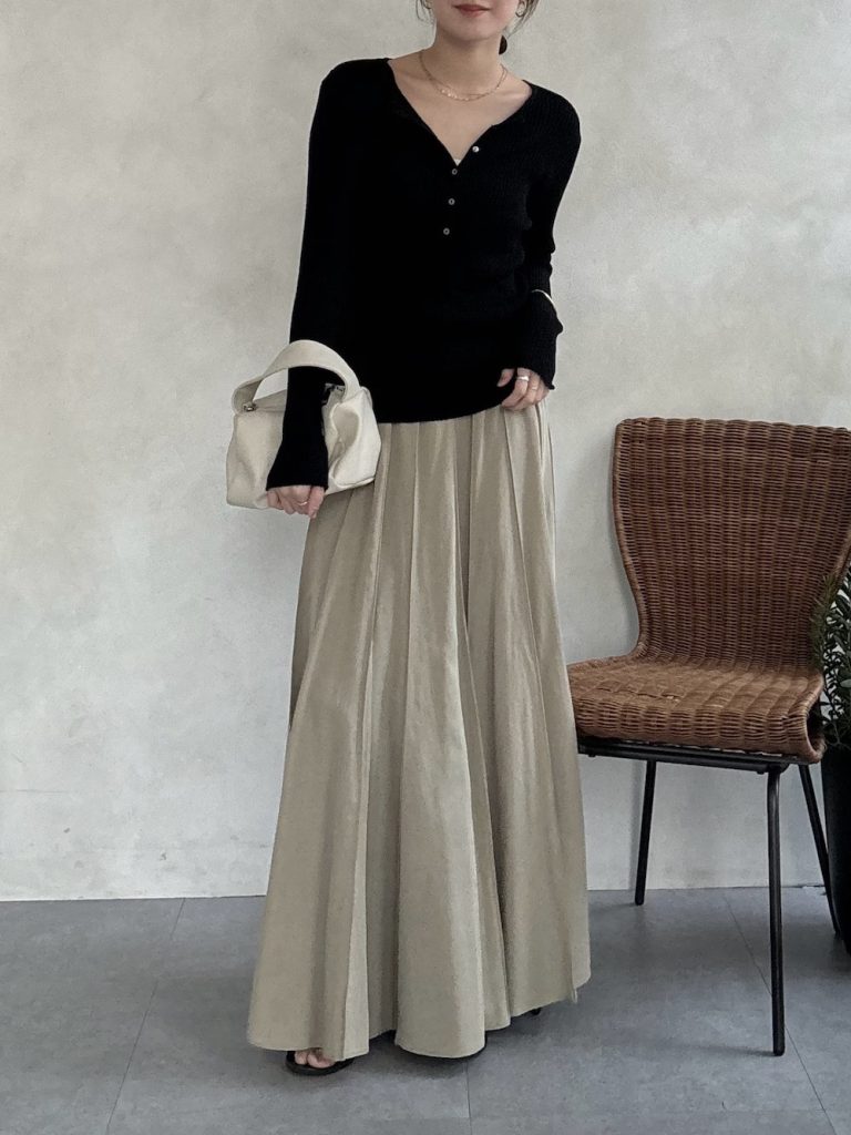 Khawatir bentuk tubuh kurang terlihat proporsional? Kamu bisa meniru gaya cewek Jepang dengan memadukan Henley top dan flared long skirt.