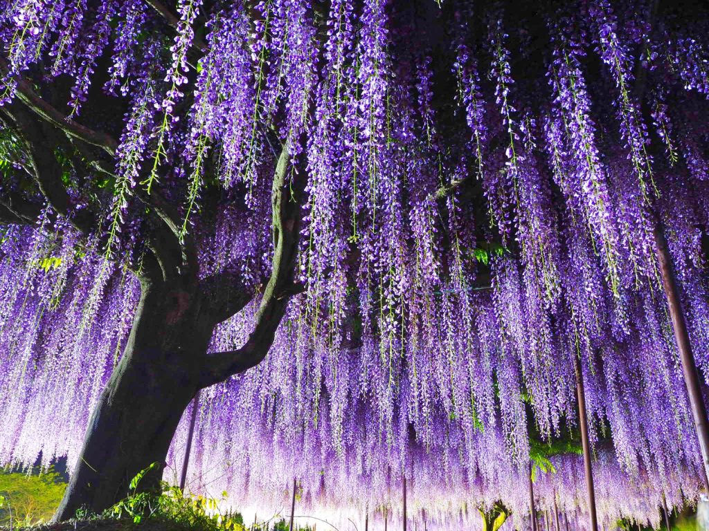 Ketika berdiri di bawah lautan bunga wisteria atau berjalan di antara lorong bunga tersebut, suasananya terasa seperti berada di dunia dongeng. Pada akhir April hingga Mei juga diadakan festival khusus, di mana bunga wisteria dihiasi dengan lampu-lampu yang berkilau sehingga menciptakan suasana yang romantis dan magis.