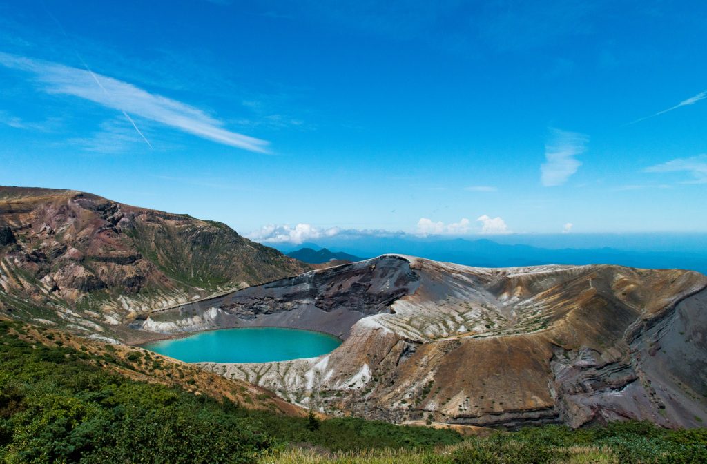 Okama Crater Lake adalah danau kawah misterius di Gunung Zao, dikelilingi oleh Gunung Goshikidake, Kumano, dan Katta. Bentuknya seperti panci, sehingga disebut “Okama”.