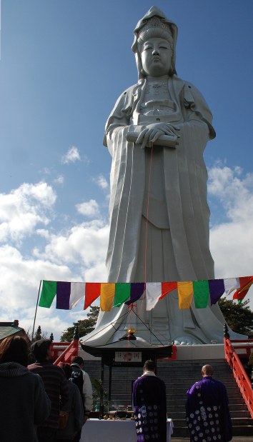 Di dalam area kuil terdapat patung Kannon berjubah putih setinggi 41 meter. Selama festival berlangsung, pihak kuil akan mengikatkan seutas benang merah sepanjang 30 meter pada patung Kannon tersebut.