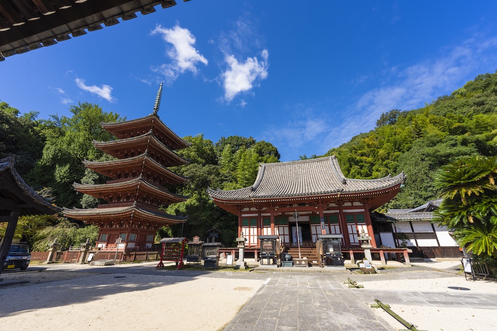 Jika berkunjung saat periode pembukaan khusus, jangan lewatkan kesempatan untuk masuk ke aula utama dan menyaksikan gaya arsitektur perpaduan Jepang–Tiongkok tertua yang masih ada di kawasan Setouchi.