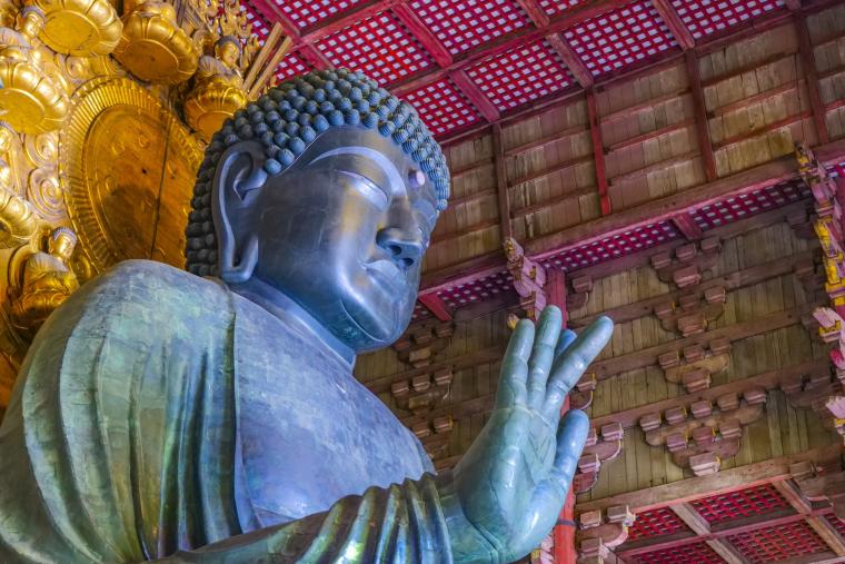 Yang paling menakjubkan adalah Great Buddha of Nara (Rushanabutsu) setinggi 14,98 meter yang ditempatkan di dalam Daibutsuden (Aula Agung Buddha), bangunan kayu terbesar di dunia.