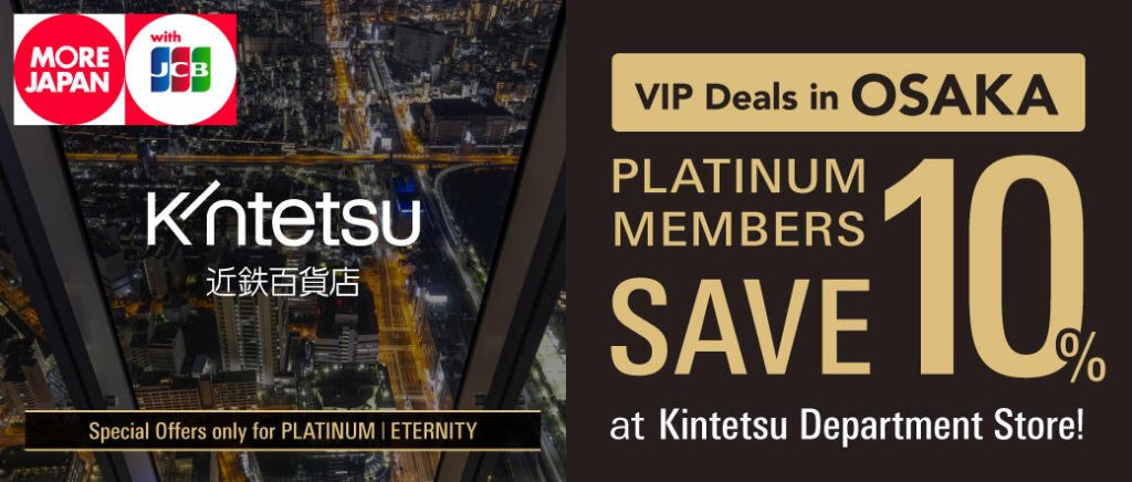 Jika Anda menunjukkan kartu JCB dan paspor Anda di Foreign Customer’s Salon/Tax-free Counter di lantai 3.5 Gedung Wing di Kintetsu Department Store Main Store Abeno Harukas, Anda akan menerima kartu yang memberikan diskon 7% di Kintetsu Department Store Main Store Abeno Harukas.