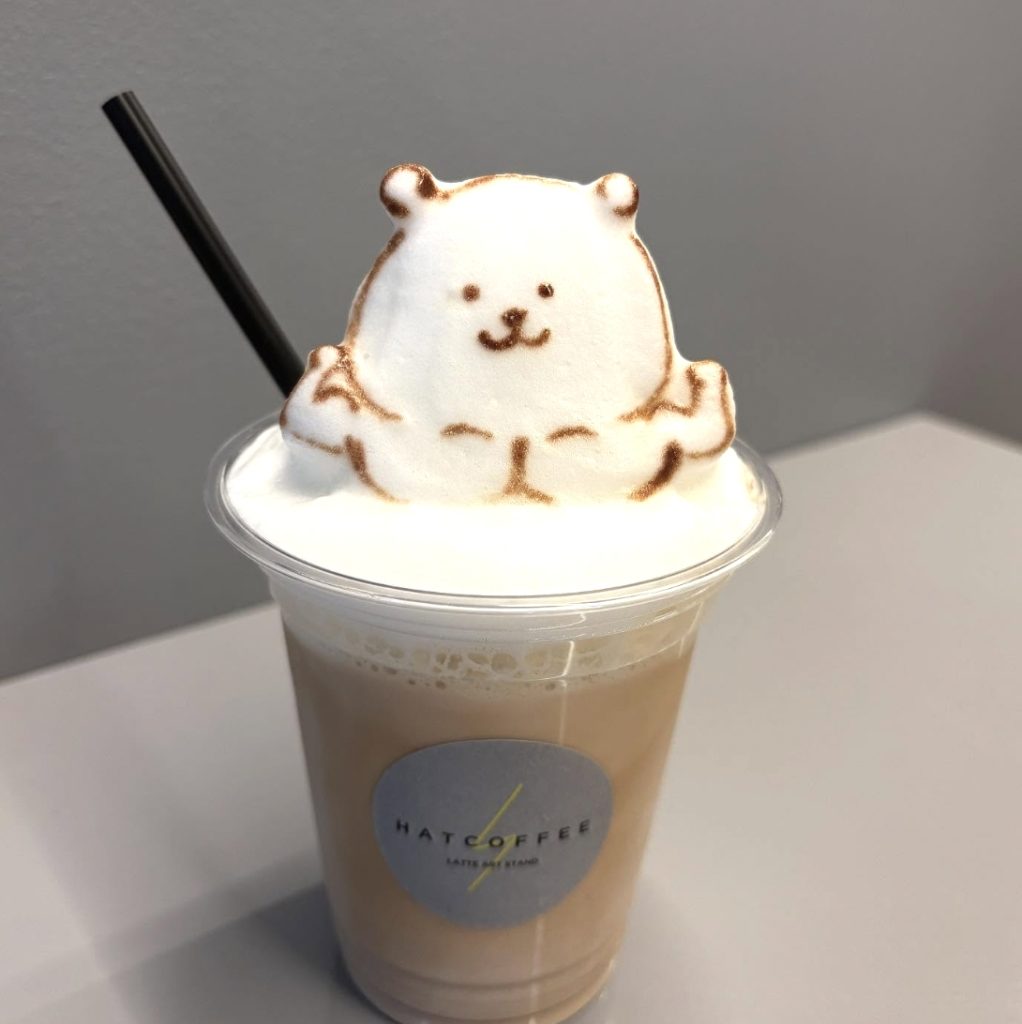 Kafe spesialis latte art custom, HATCOFFEE dan HATCOFFEE LATTEART STAND, terkenal dengan konsep “bisa membuat motif apa saja” dan sangat populer di kalangan pelanggan.