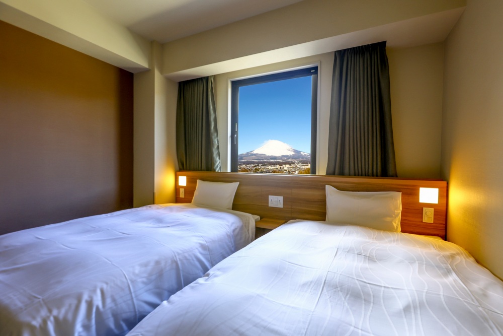 Khusus untuk kamar tamu dengan onsen pribadi di lantai tiga, kamu bisa menikmati pemandangan Gunung Fuji yang menakjubkan sambil berendam di bak mandi.