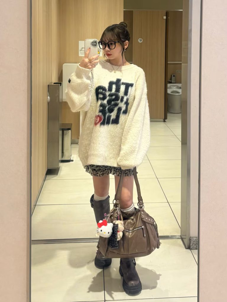 Atasan rajut dengan potongan longgar atau rajutan besar sangat cocok untuk menciptakan kesan santai khas Jepang dan gaya manis.
