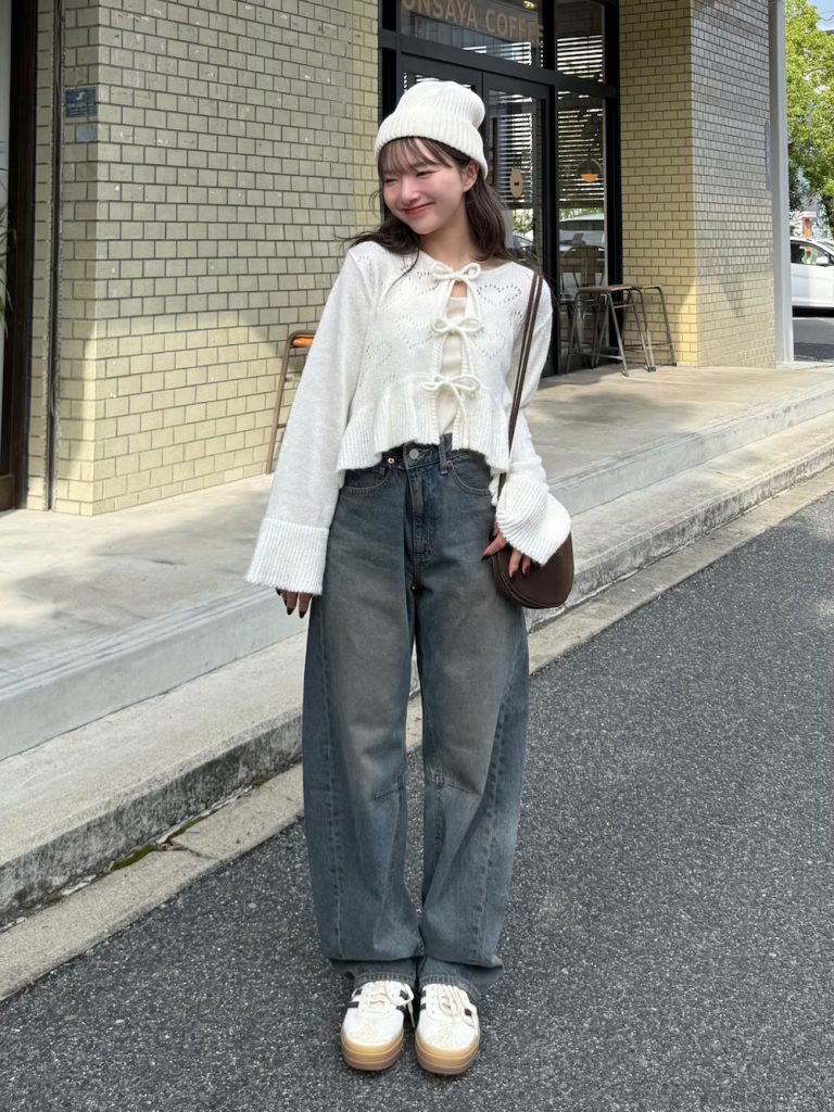 Modelnya yang sedikit androgini menambah kesan santai khas gaya Jepang. Saat dipadukan dengan cardigan, hasilnya adalah outfit musim gugur yang terlihat chic, nyaman, dan berkarakter.