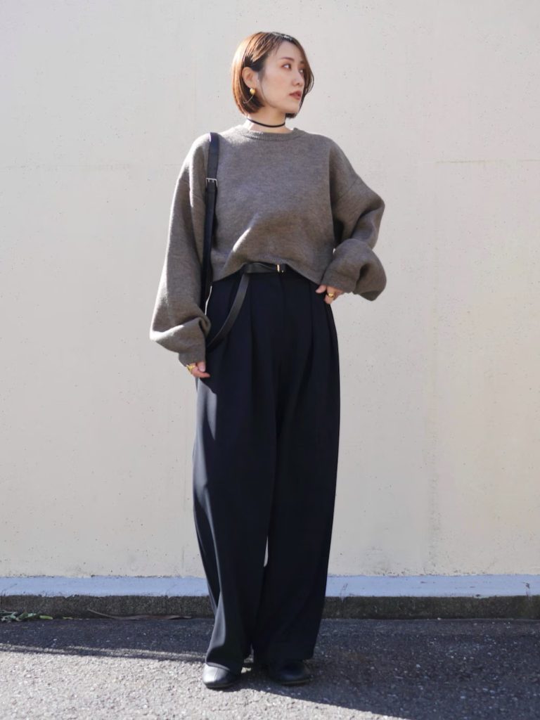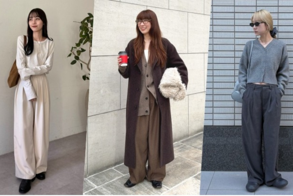 Berikut ide outfit kerja saat musim dingin menggunakan casual suit pants dengan warna berbeda untuk menciptakan nuansa elegan ala Jepang.