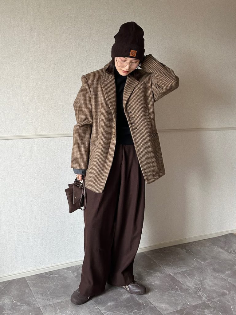Warna cokelat menjadi tren favorit musim ini dan banyak digemari wanita Jepang. Kombinasikan plaid blazer dengan casual suit pants senada untuk tampilan yang terlihat premium.