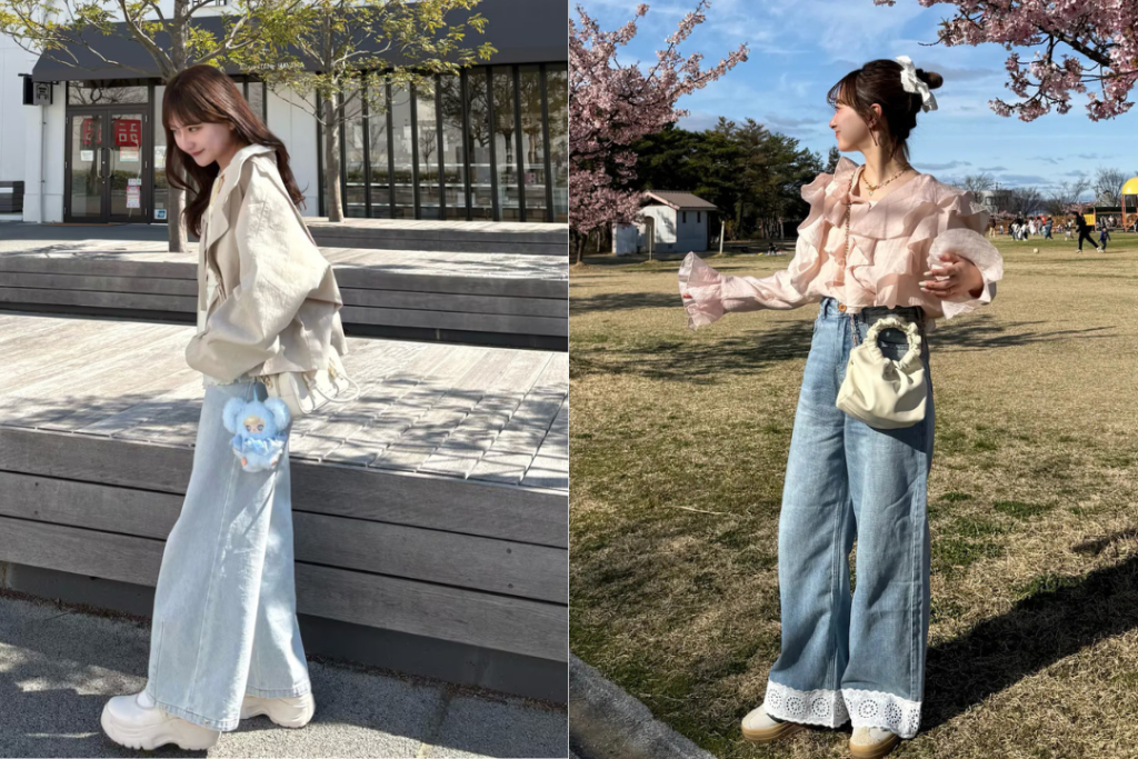 Jika khawatir suhu malam hari terasa lebih dingin, kamu bisa memadukan cropped trench coat dengan wide pants. Siluet trench coat yang clean memberikan kesan dewasa ala Japanese style, sementara wide pants yang sedang tren membuat tampilan tetap fashionable saat traveling di Jepang.
