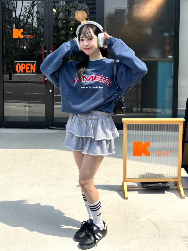 Buat kamu yang menyukai gaya manis dan feminin, padukan University TEE dengan skirt (rok) ala perempuan Jepang.
