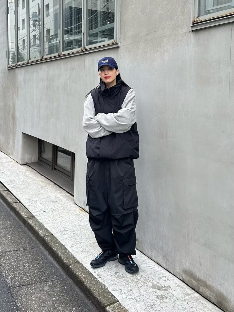 Perpaduan dua casual item ini menciptakan kesan Japanese street style yang effortless. Padukan dengan sneakers atau flat shoes agar makin nyaman.