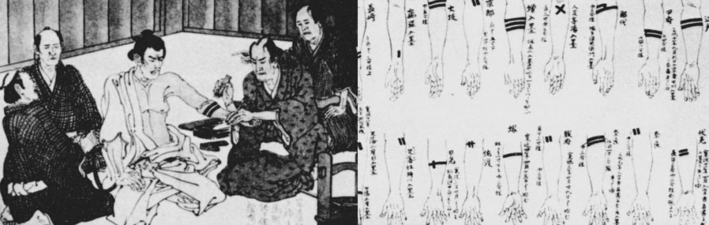 Pada zaman Edo, hukuman ini sangat umum. Para pelaku kejahatan akan ditato dengan garis atau simbol tertentu, misalnya di lengan. Jika di lengan masih bisa ditutupi pakaian, tato di wajah justru membuat rasa malu semakin besar dan menjadi tanda aib seumur hidup.