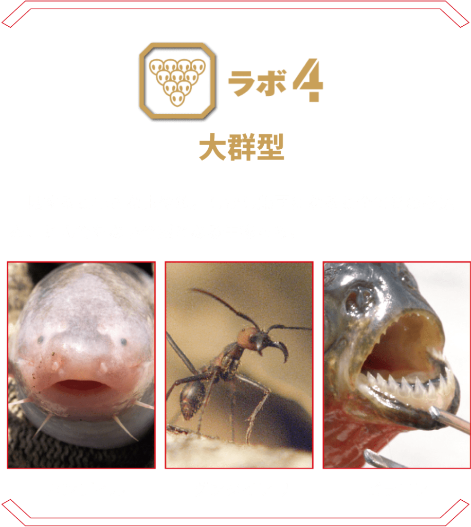 Makhluk seperti belut listrik yang menggunakan sengatan listrik sebagai senjata. Melalui metode spesimen transparan khusus, “mekanisme pembangkit listrik” mereka akan diperlihatkan secara jelas.