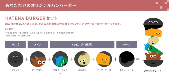 Jika memilih set menu HATENA BURGER, kamu bisa menciptakan burger “unik” yang benar-benar personal!