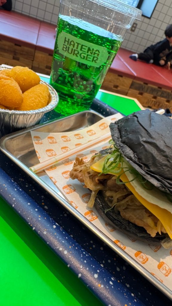 Setelah puas menjelajahi pameran dan wahana interaktif—serta “menguras dompet”—kamu bisa beristirahat di “HATENA BURGER” yang terletak di lantai 1 Gedung Pameran 3.