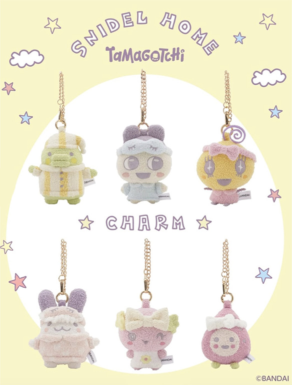 Kolaborasi ini juga menghadirkan plush charm berbahan lembut yang sangat menggemaskan. Mametchi dan teman-temannya tampil dengan pajama look, desain eksklusif yang hanya ada dalam kolaborasi ini.
