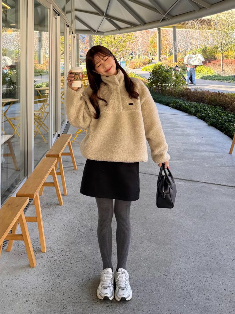 Item favorit cewek Jepang belakangan ini adalah half-zip top dengan bahan teddy/faux fur yang terlihat cute dan cozy. Desain ritsleting setengah memungkinkan kamu mengatur gaya menjadi collar style atau high neck style.