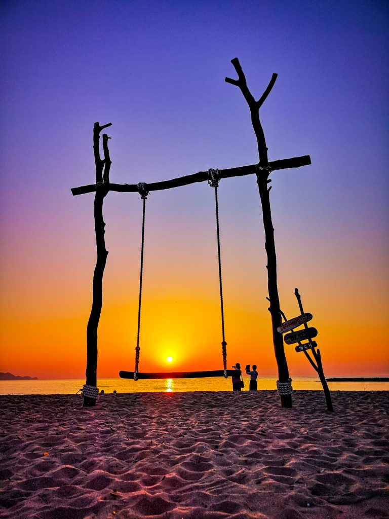 Musim terbaik untuk menikmati keindahan ini adalah musim semi dan musim panas. Selain sunset yang indah, terdapat ayunan kayu besar di pantai yang menjadi spot foto populer.
