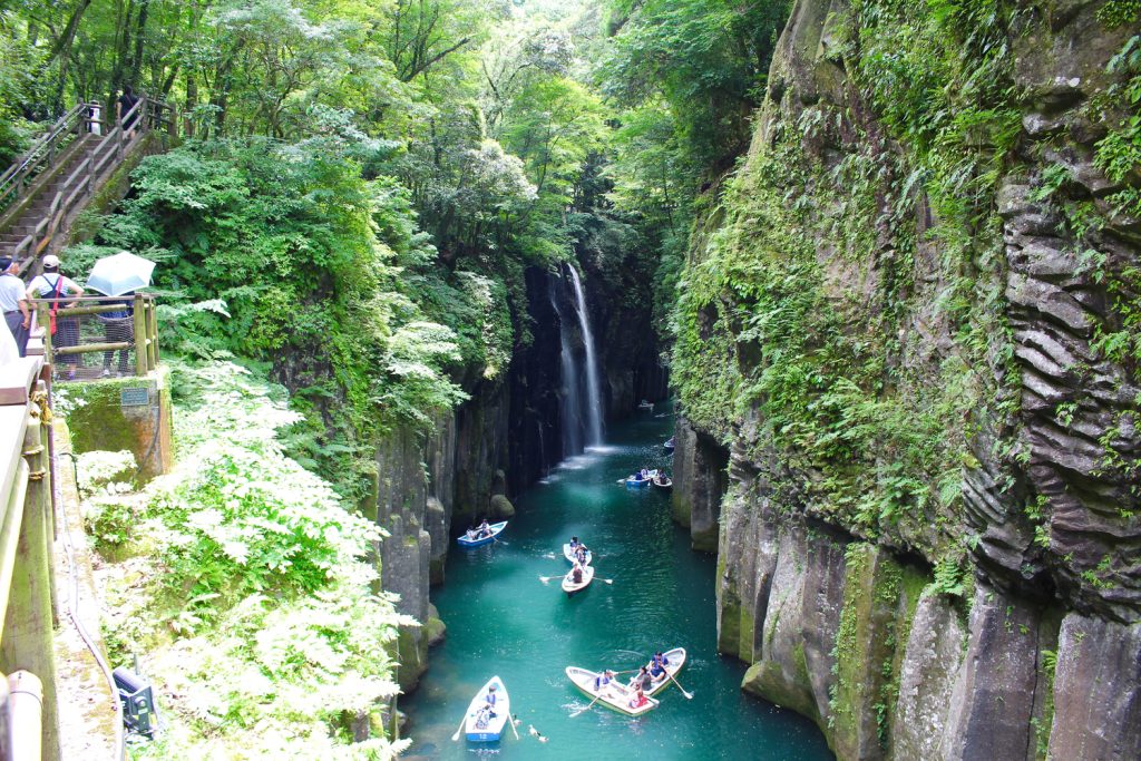 Takachiho Gorge adalah ngarai indah di Prefektur Miyazaki dengan suasana yang tenang dan alami. Terbentuk dari aliran material vulkanik Gunung Aso yang mendingin dan tererosi oleh sungai selama ribuan tahun, ngarai ini membentang sekitar 7 km dengan ketinggian tebing rata-rata 80 meter.