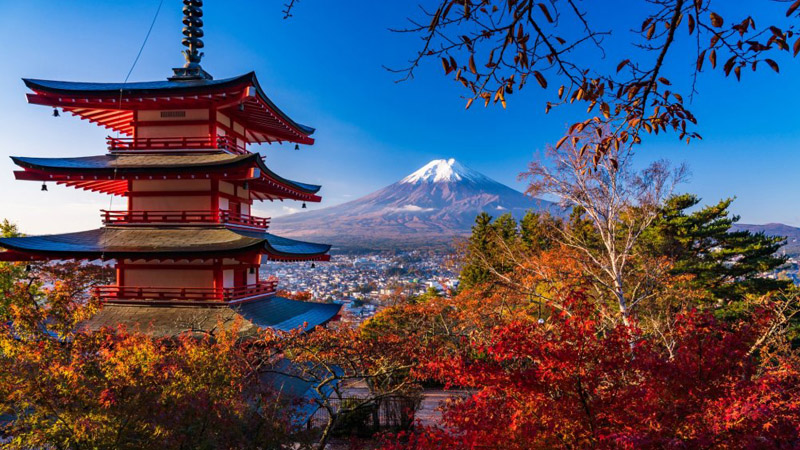 Naiki 398 anak tangga dan di depan matamu akan terbentang pemandangan Gunung Fuji x momiji x pagoda lima tingkat — satu tempat yang benar-benar menggambarkan keindahan khas Jepang.