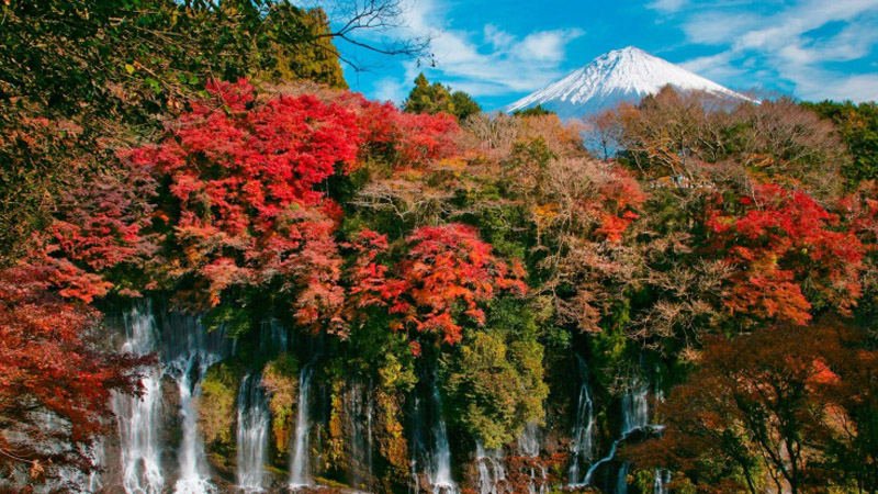 Saat musim gugur, kamu bisa menyaksikan perpaduan sempurna antara daun momiji, air terjun, dan Gunung Fuji dalam satu panorama yang menakjubkan, menjadikannya salah satu spot favorit untuk melihat momiji di Fujinomiya.